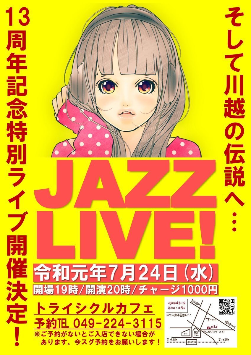 連日暑い日が続きますね。私は萎んできましたトライシクルカフェです。な、な、なんと7月で当店は13周年を迎えます(閉店しない限り)。ありがとう!サンキュー!グラシアス!オブリガード!コップンカー!シェイシェイ!ということでジャズライブ開催決定!ご予約受付開始!詳細は画像見てね。