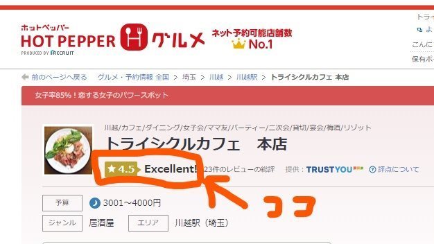さて、いつの間にかホットペッパーグルメで店の評点が