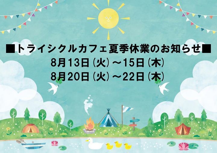 恋する女のパワースポット川越トライシクルカフェ社長のタイチです。夏季休業のお知らせです。もちろん店舗は休みでもネット予約は24時間365日受付中です。下記からどうぞ。https://tricyclecafe.owst.jp/