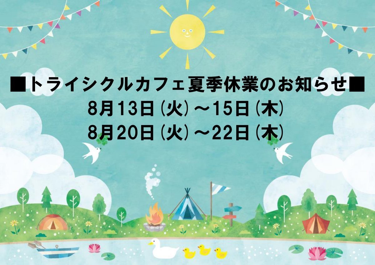 恋する女のパワースポット川越トライシクルカフェ社長のタイチです。夏季休業のお知らせです。もちろん店舗は休みでもネット予約は24時間365日受付中です。下記からどうぞ。https://t.co/8aztubqHJB