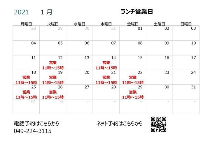 どうも川越トライシクルカフェです。さて、1月もランチやります。でも9日間しかやりません。決してやる気がないわけではないです。戦略的にプレミアム感を出しているのですよ(笑)