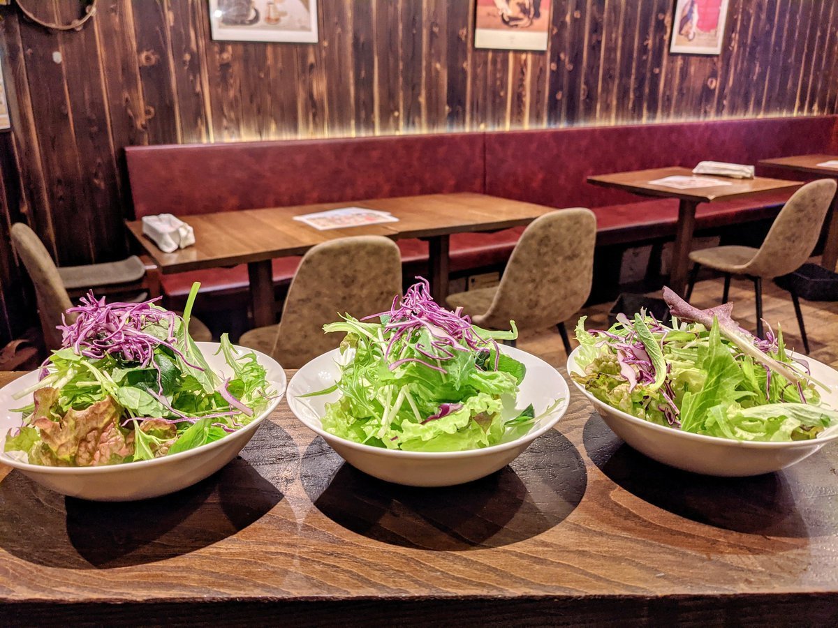 もうすぐランチタイムが始まるよい。写真はサラダさんです。サニーレタス、水菜、ベビーリーフ、紫キャベツと私の優しさが入っています。これに自家製ドレッシング。どうも川越トライシクルカフェです。おはようございまする。