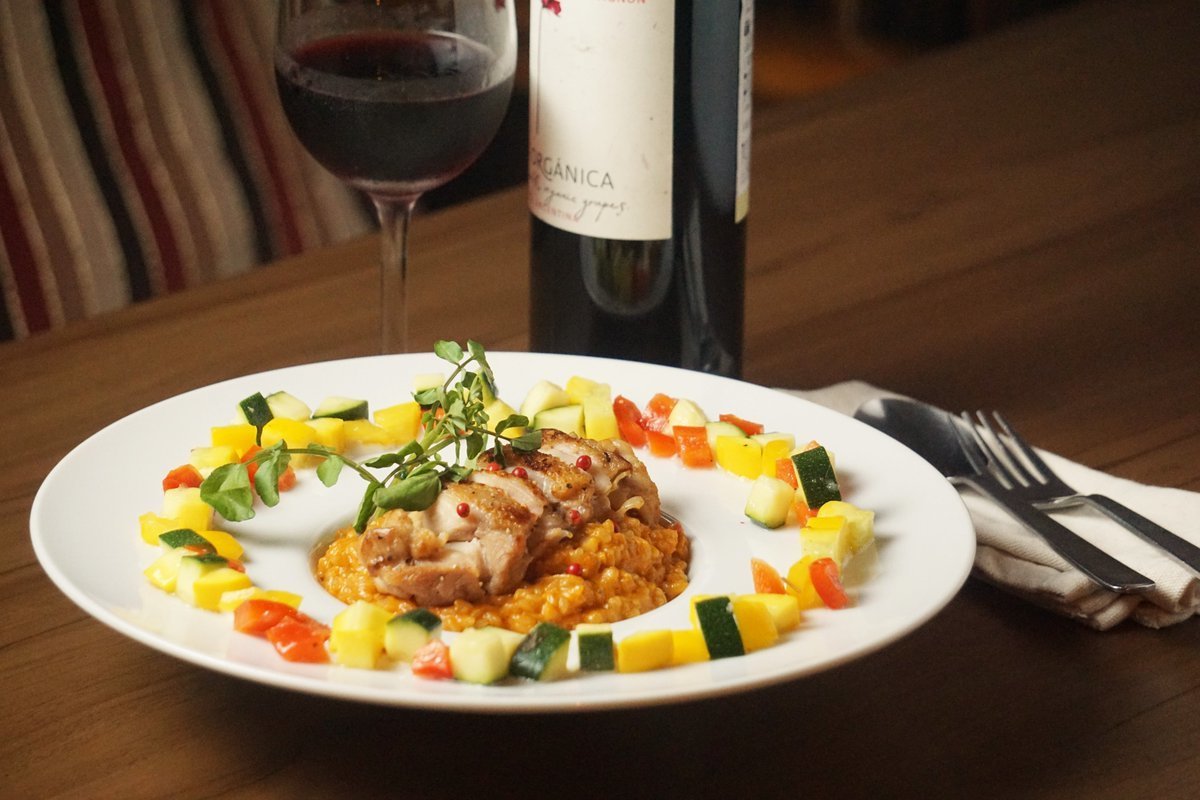 川越トライシクルカフェです。こんにちは!新作のリゾットがリリース直後から人気です。夏野菜をたっぷりトッピングし、見た目にも華やかです。マテ茶を食べて育った「マテ茶鶏」のソテーを、トマトカレーリゾットの上に乗せました。どうぞご賞味くださいませ。1日限定3食です。
