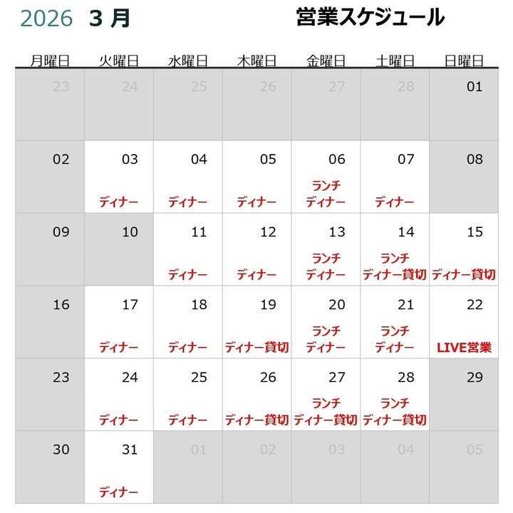 ランチの時間帯の貸し切りや定休日の貸し切りも可能な場合がありますので、そういったご要望もお気軽にご相談くださいね。